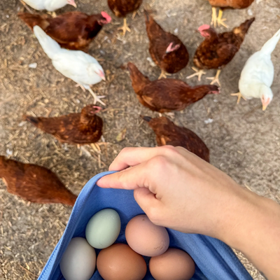 Raising Animals the Way Nature Intended: Our animals are treated with the utmost care and respect, given an stress-free space, and the freedom to live happy, healthy lives. Our pasture-raised chickens are moved daily to fresh ground, allowing them to forage naturally. We provide only all-natural feed enriched with probiotics and minerals to ensure the healthiest possible animals.